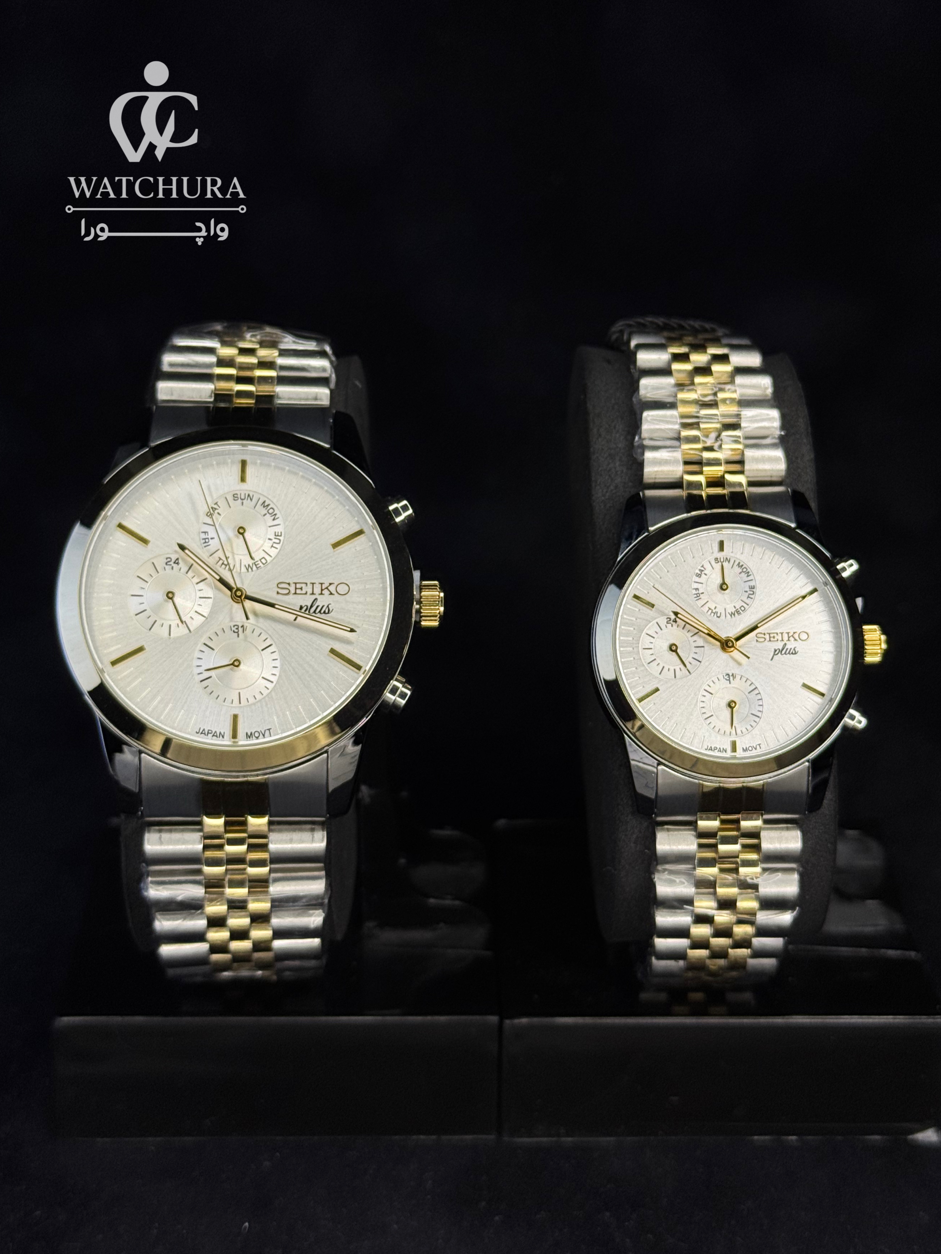 ساعت مچی ست (Couple Set) سیکو پلاس کرنوگراف - سیلور طلایی با صفحه سیلور