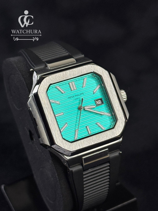 این ساعت پتک فیلیپ، با فرم قاب منحصر به فرد خود که ترکیبی جسورانه از مربع و هشتضلعی (شبیه به مدلهای برجسته لوکس اسپرت) است، تعریفی مدرن از لوکس بودن را ارائه میدهد. قاب استیل صیقلی، به زیبایی با صفحه سفید رنگ بافتدار هماهنگ شده است. صفحه دارای نشانگرهای ساعت برجسته و ساده است که خوانایی را در کنار زیبایی حفظ کردهاند. مهمترین ویژگی اسپرت این مدل، بند رابر (سیلیکون) مشکی رنگ آن است که راحتی فوقالعادهای را برای استفاده روزانه، سفر و فعالیتهای ورزشی فراهم میکند، در حالی که ماهیت لوکس برند حفظ شده است. این ساعت، انتخابی بینظیر برای افرادی است که به دنبال یک ساعت لوکس سوئیسی با طراحی مدرن، اسپرت و متفاوت از مدلهای سنتی هستند.