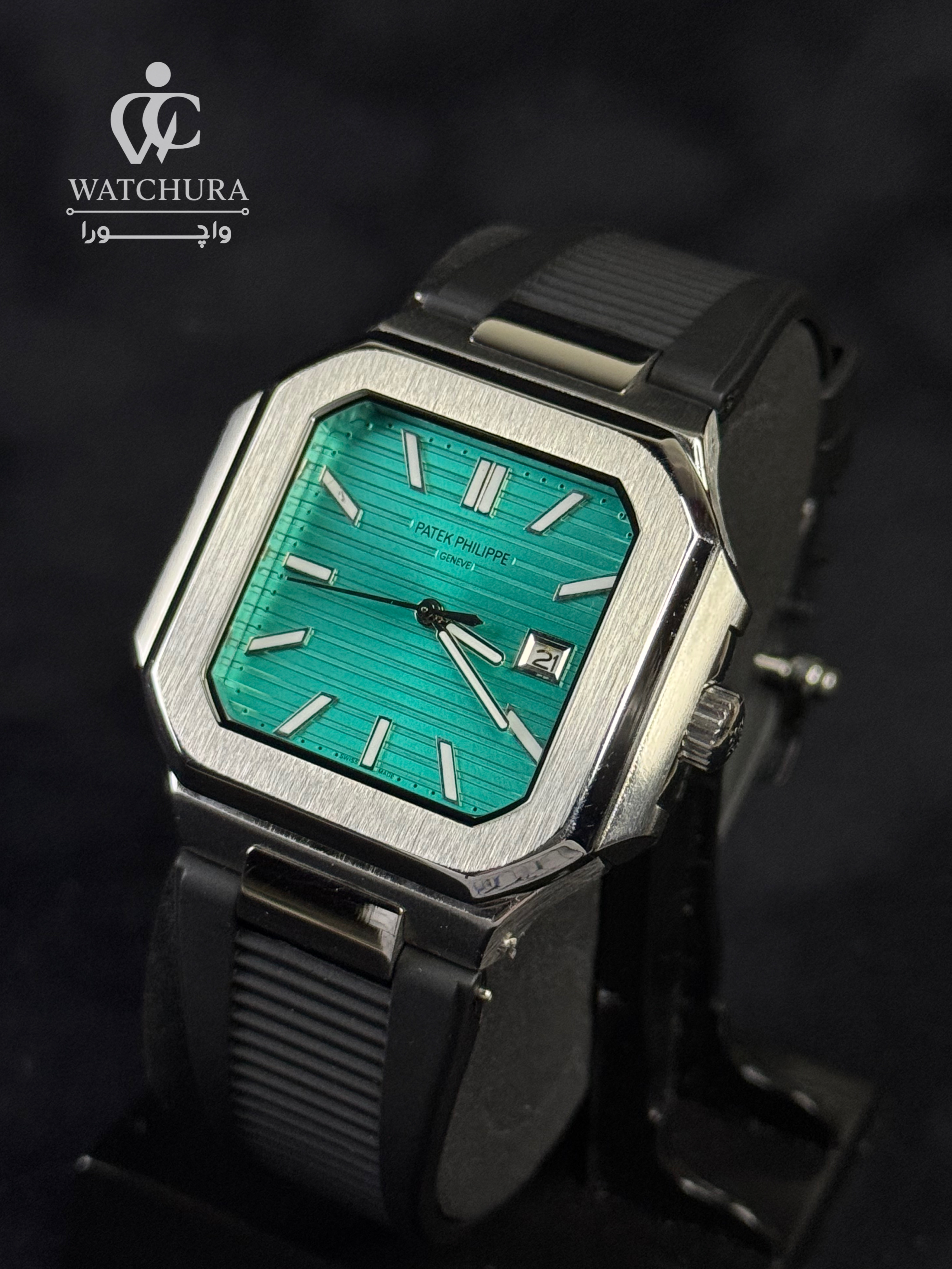 این ساعت پتک فیلیپ، با فرم قاب منحصر به فرد خود که ترکیبی جسورانه از مربع و هشتضلعی (شبیه به مدلهای برجسته لوکس اسپرت) است، تعریفی مدرن از لوکس بودن را ارائه میدهد. قاب استیل صیقلی، به زیبایی با صفحه سفید رنگ بافتدار هماهنگ شده است. صفحه دارای نشانگرهای ساعت برجسته و ساده است که خوانایی را در کنار زیبایی حفظ کردهاند. مهمترین ویژگی اسپرت این مدل، بند رابر (سیلیکون) مشکی رنگ آن است که راحتی فوقالعادهای را برای استفاده روزانه، سفر و فعالیتهای ورزشی فراهم میکند، در حالی که ماهیت لوکس برند حفظ شده است. این ساعت، انتخابی بینظیر برای افرادی است که به دنبال یک ساعت لوکس سوئیسی با طراحی مدرن، اسپرت و متفاوت از مدلهای سنتی هستند.