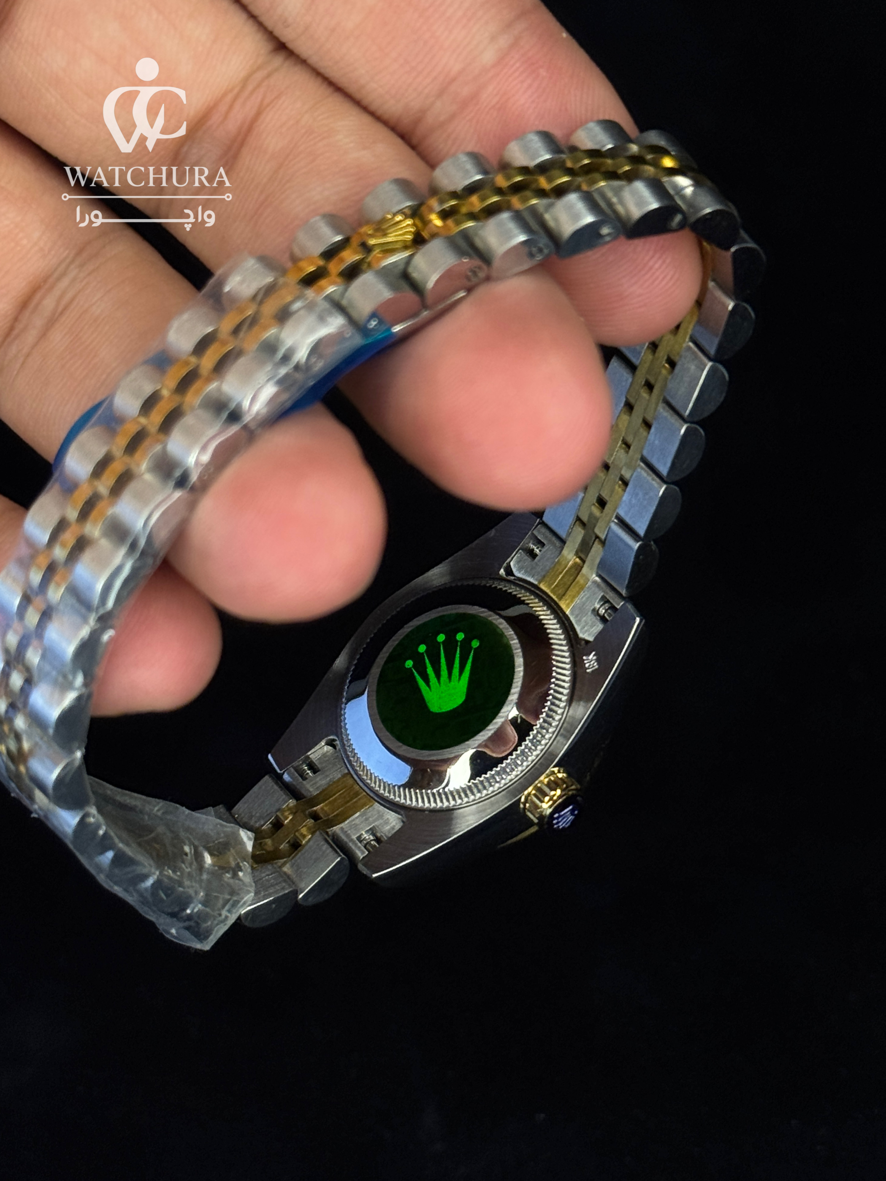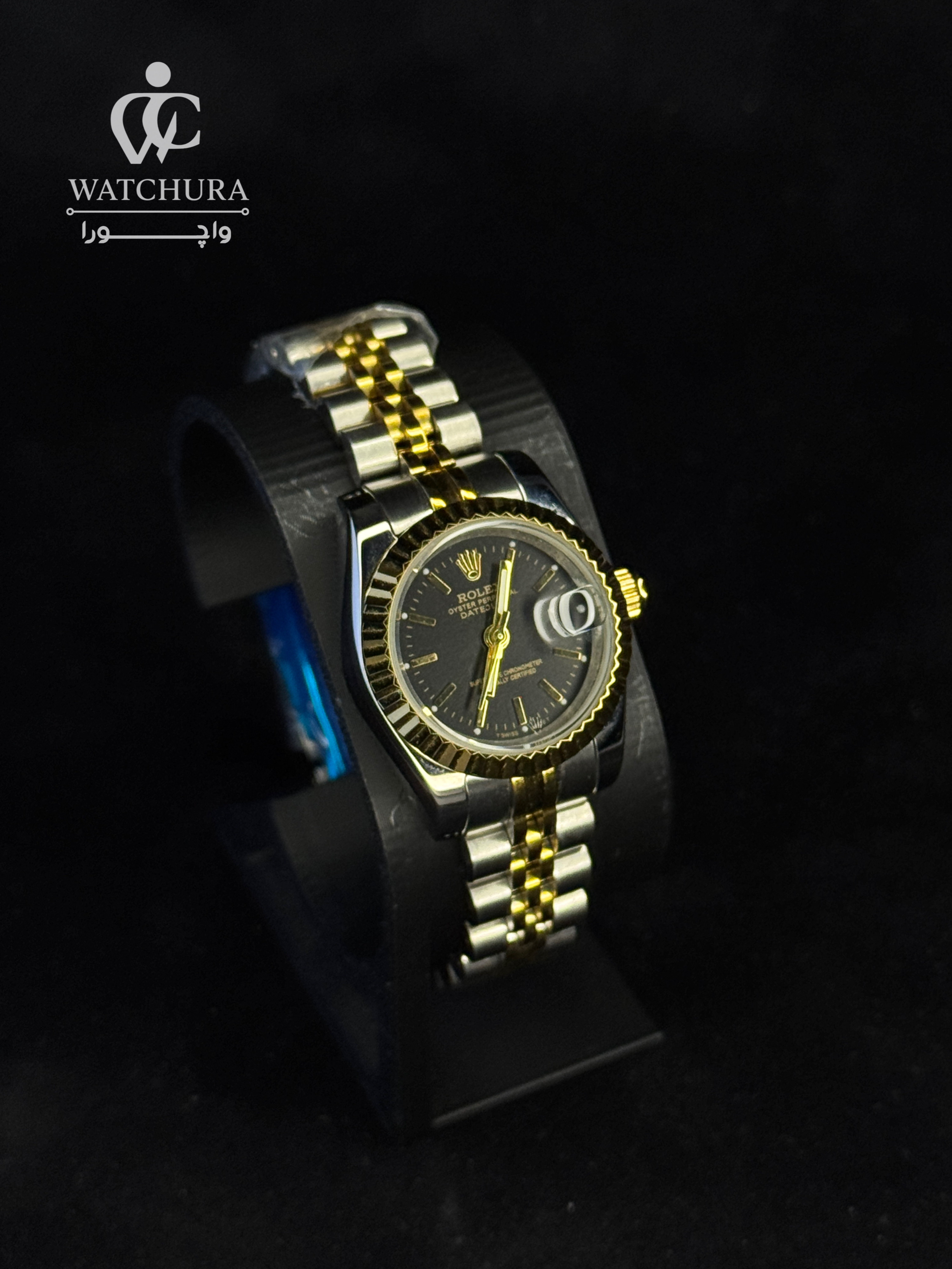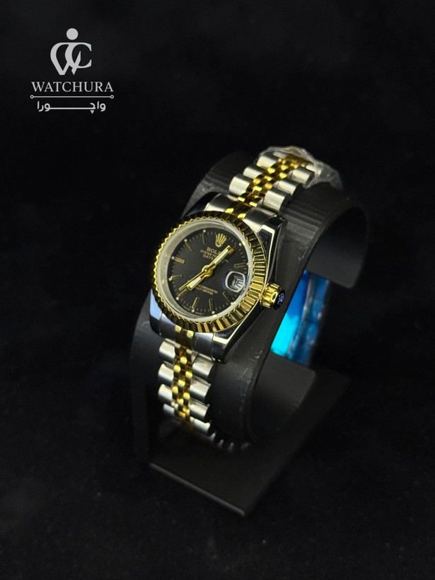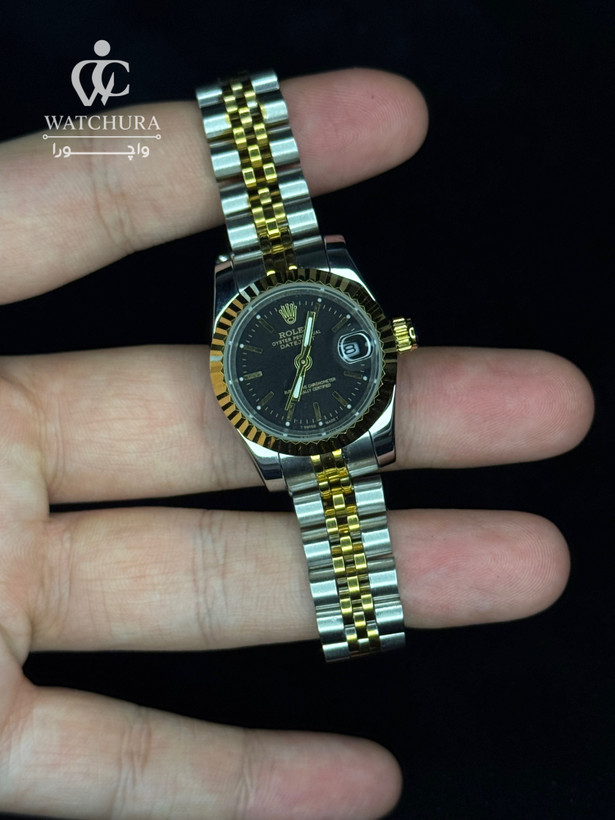 ساعت رولکس لیدی دیتجاست، نمادی بیبدیل از ظرافت، دقت و تجمل زنانه است. این مدل با قاب ظریف و کوچک خود، به گونهای طراحی شده که مانند یک دستبند جواهر بر روی مچ دست بانوان میدرخشد. ویژگیهای کلاسیک رولکس از جمله قاب کنگرهدار (Fluted Bezel) و عدسی بزرگنمای تاریخ (سایکلارپس)، در این ابعاد مینیاتوری جلوهای دوچندان یافتهاند. بند مشهور "جوبیلی" با بافت پنجردیفه خود، نهایت راحتی و انعطاف را فراهم کرده و استایلی فراتر از زمان به شما میبخشد. این ساعت برای بانوانی که به دنبال ترکیبی از اصالت کلاسیک و درخشش مدرن در یک قطعه ماندگار هستند، انتخابی بینقص است.