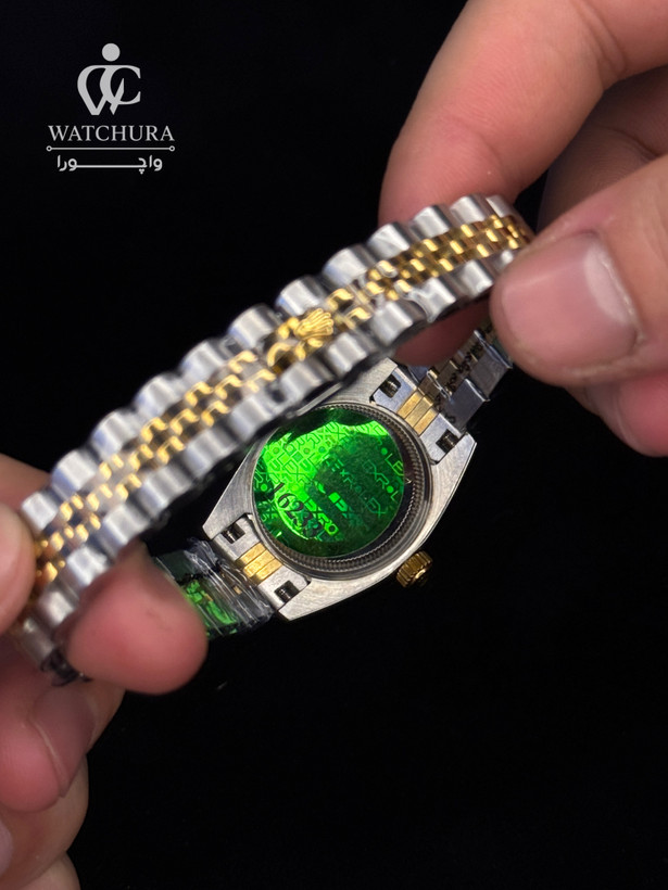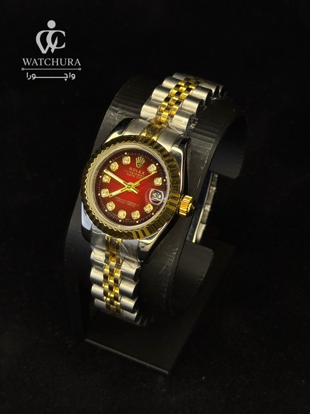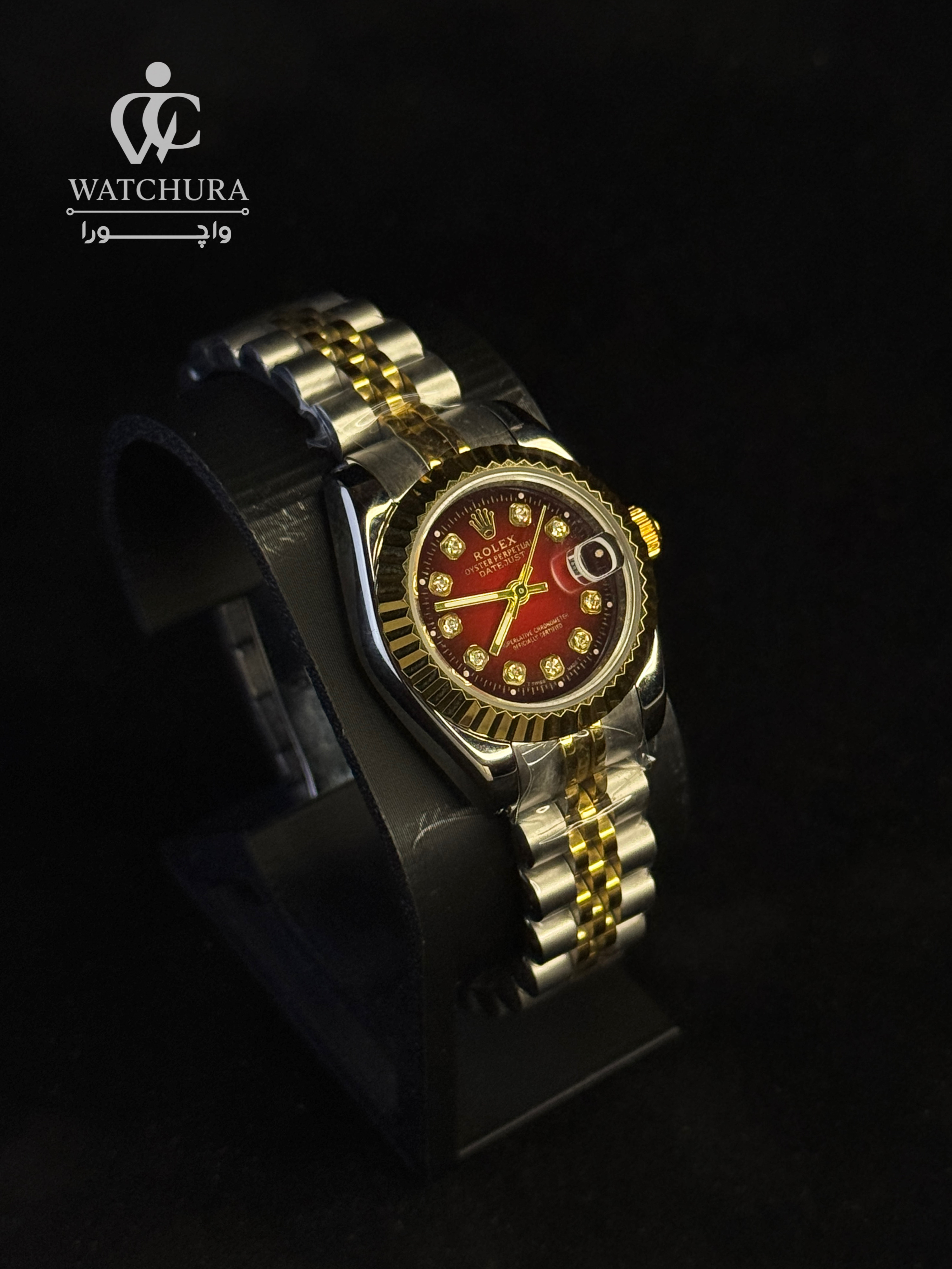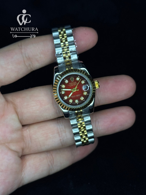 ساعت رولکس لیدی دیتجاست، نمادی بیبدیل از ظرافت، دقت و تجمل زنانه است. این مدل با قاب ظریف و کوچک خود، به گونهای طراحی شده که مانند یک دستبند جواهر بر روی مچ دست بانوان میدرخشد. ویژگیهای کلاسیک رولکس از جمله قاب کنگرهدار (Fluted Bezel) و عدسی بزرگنمای تاریخ (سایکلارپس)، در این ابعاد مینیاتوری جلوهای دوچندان یافتهاند. بند مشهور "جوبیلی" با بافت پنجردیفه خود، نهایت راحتی و انعطاف را فراهم کرده و استایلی فراتر از زمان به شما میبخشد. این ساعت برای بانوانی که به دنبال ترکیبی از اصالت کلاسیک و درخشش مدرن در یک قطعه ماندگار هستند، انتخابی بینقص است.