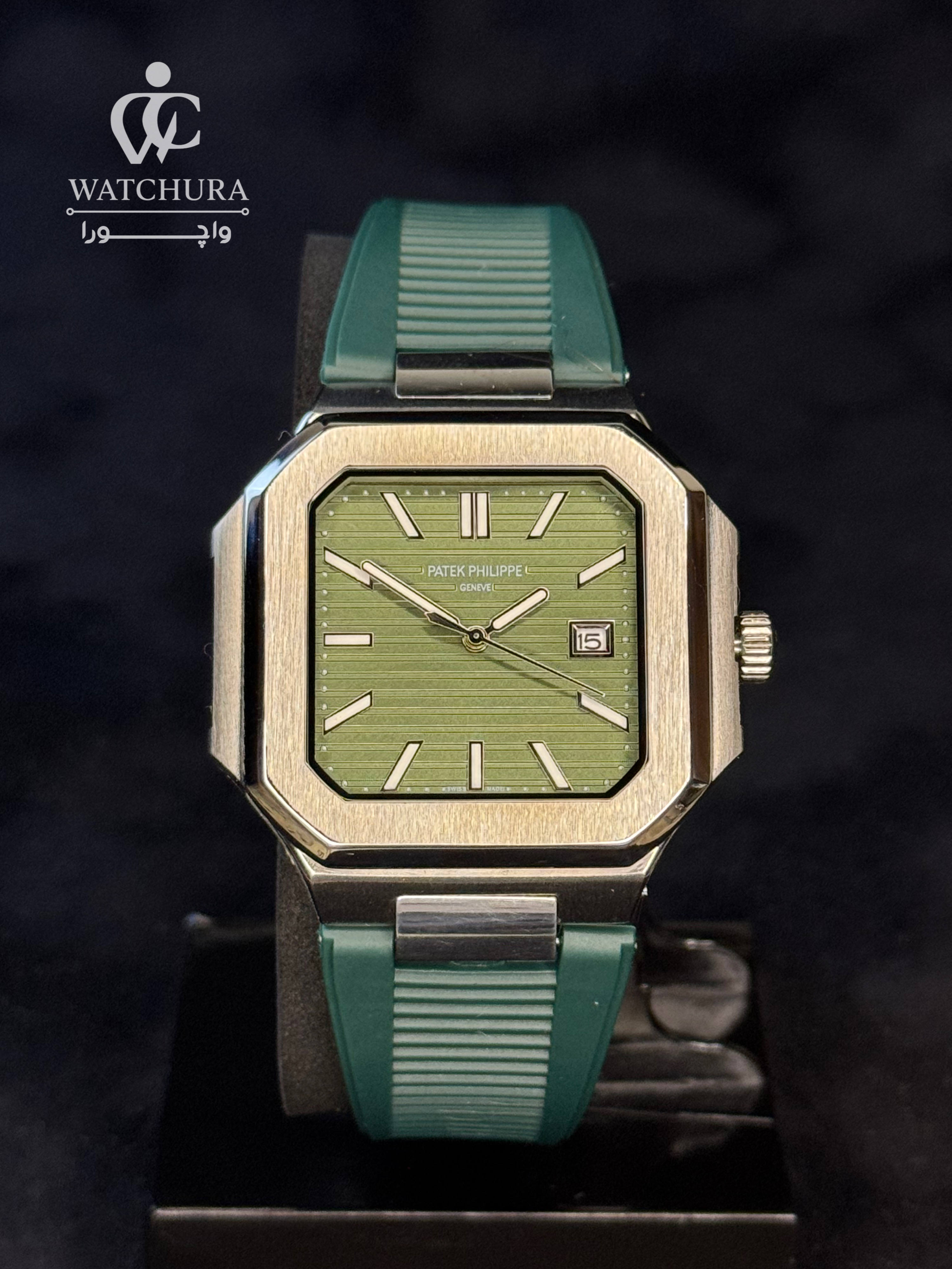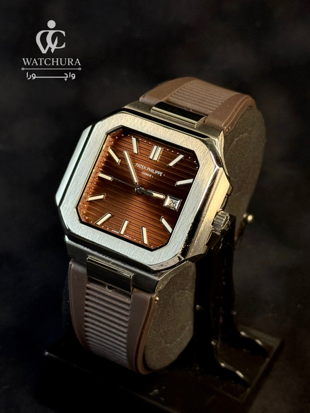 این ساعت پتک فیلیپ، با فرم قاب منحصر به فرد خود که ترکیبی جسورانه از مربع و هشتضلعی (شبیه به مدلهای برجسته لوکس اسپرت) است، تعریفی مدرن از لوکس بودن را ارائه میدهد. قاب استیل صیقلی، به زیبایی با صفحه سفید رنگ بافتدار هماهنگ شده است. صفحه دارای نشانگرهای ساعت برجسته و ساده است که خوانایی را در کنار زیبایی حفظ کردهاند. مهمترین ویژگی اسپرت این مدل، بند رابر (سیلیکون) مشکی رنگ آن است که راحتی فوقالعادهای را برای استفاده روزانه، سفر و فعالیتهای ورزشی فراهم میکند، در حالی که ماهیت لوکس برند حفظ شده است. این ساعت، انتخابی بینظیر برای افرادی است که به دنبال یک ساعت لوکس سوئیسی با طراحی مدرن، اسپرت و متفاوت از مدلهای سنتی هستند.