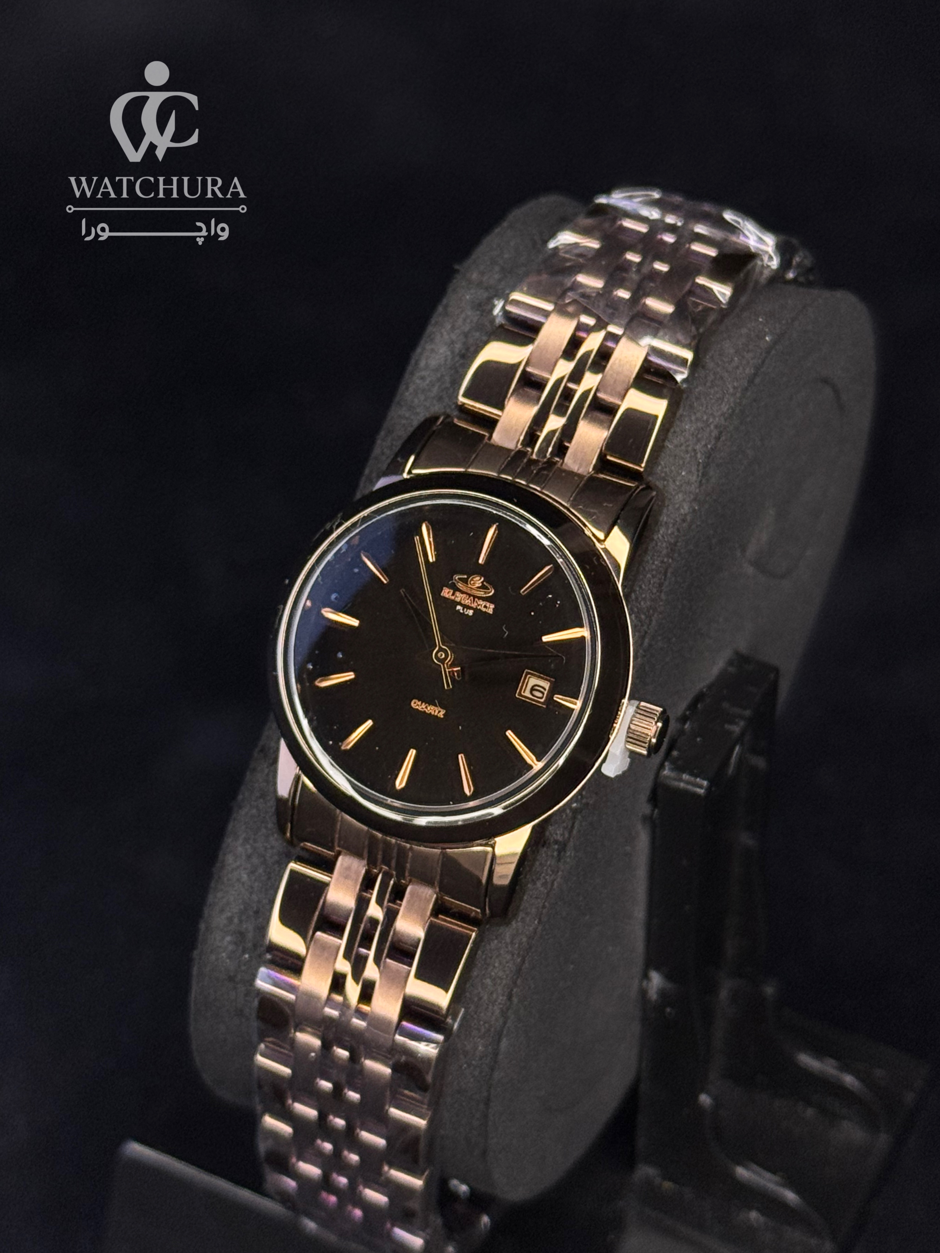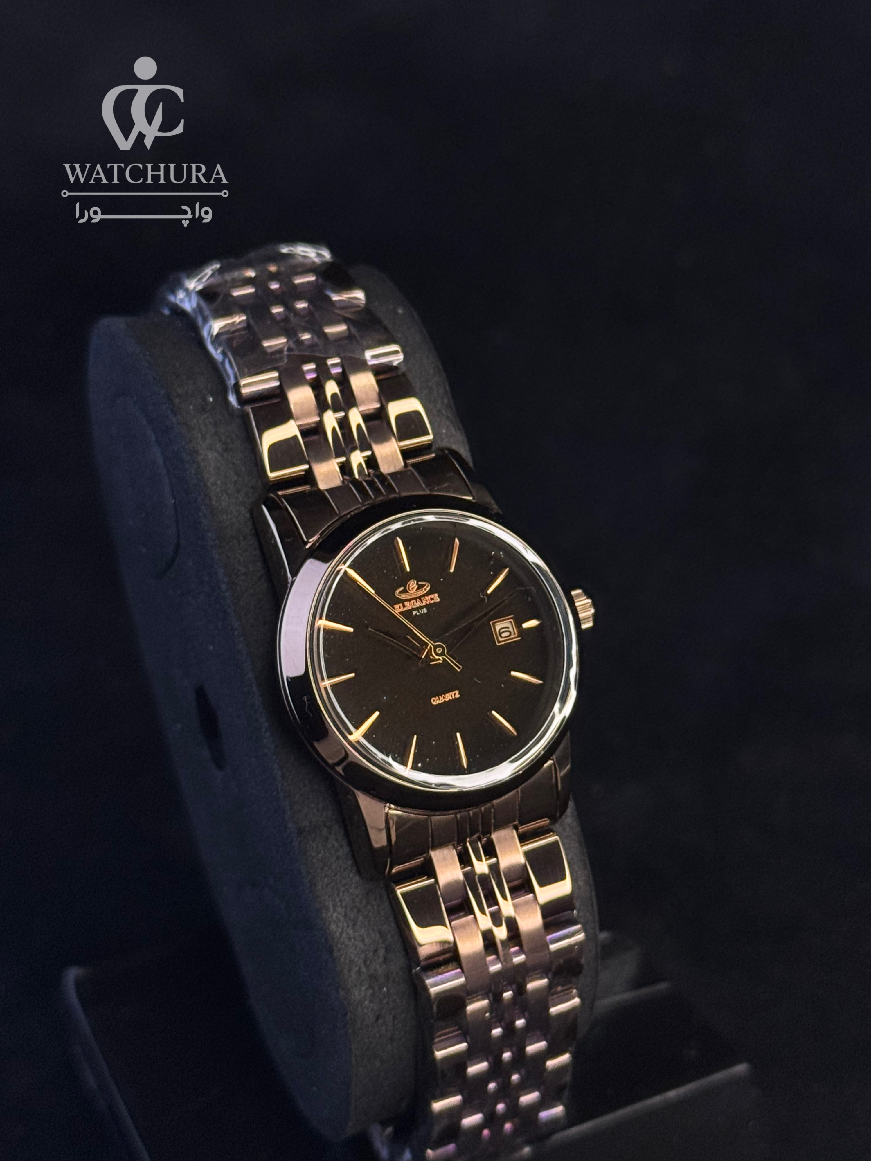 ساعتی که فراتر از یک نمایشگر زمان، به عنوان یک اکسسوری خیرهکننده بر مچ دست شما میدرخشد. طراحی ظریف قاب و صفحه درخشان این مدل، هماهنگی بینظیری با پوششهای مجلسی و روزمره بانوان شیکپوش دارد.