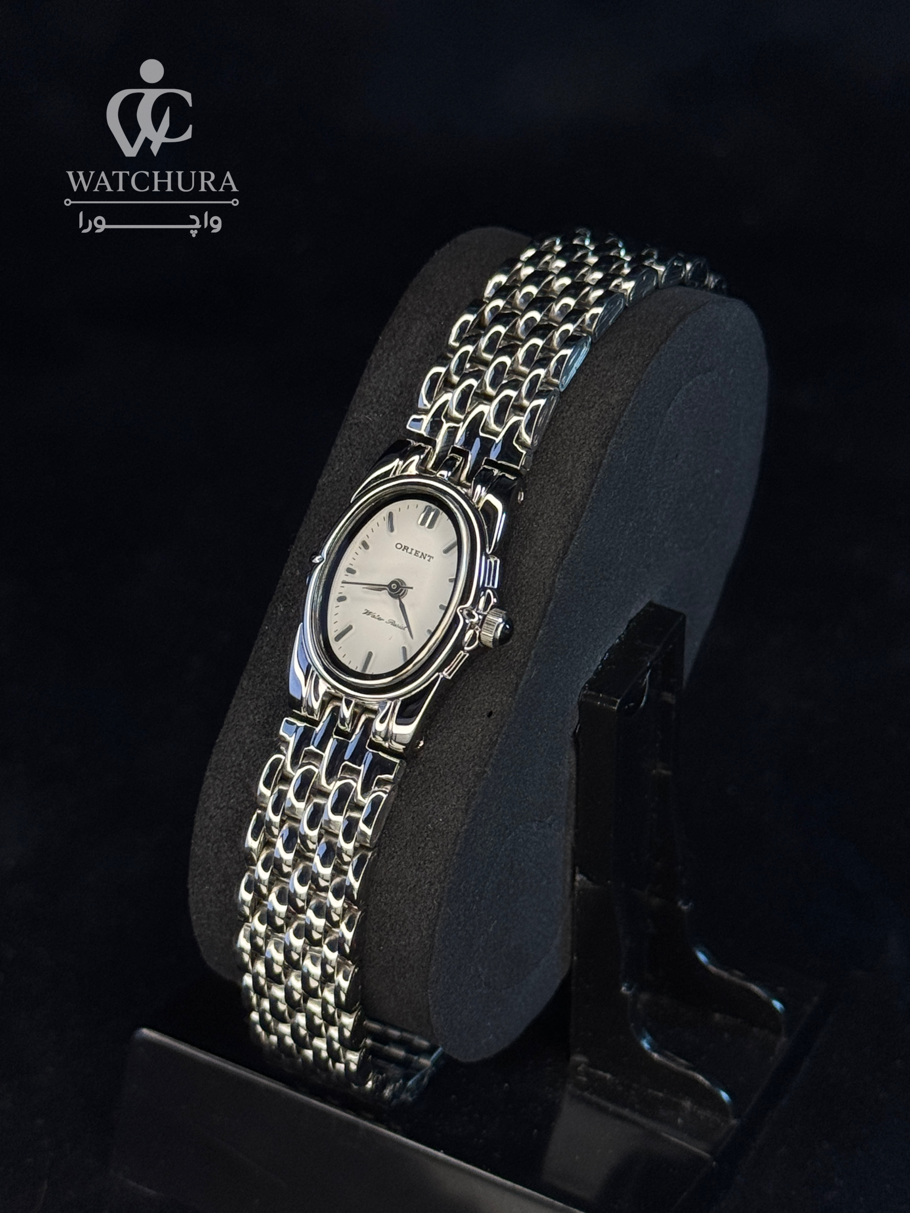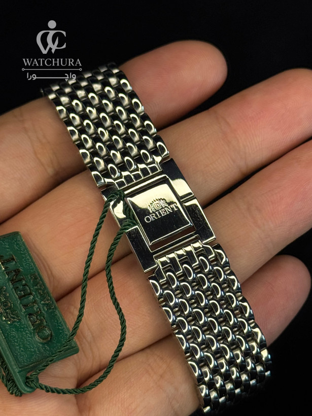 این ساعت مچی کلاسیک از برند ژاپنی اورینت (Orient)، نمادی از سادگی شیک و طراحی جاودانه است. فرم (مستطیلی یا بیضی ) خاص این قاب، آن را از مدلهای گرد رایج متمایز کرده و حسی نوستالژیک و در عین حال مدرن به استایل شما میبخشد. صفحه سفید مینیمال با نمایشگرهای خطی و تنها دو عدد رومی (XII و VI) ظاهری خوانا و بسیار باوقار ایجاد کرده است. بند فلزی با طرح سهبعدی و براق، تکمیل کننده ظاهر رسمی و روزمره این ساعت است و آن را به انتخابی عالی برای محیطهای کاری، مجالس یا استفاده روزانه تبدیل میکند.