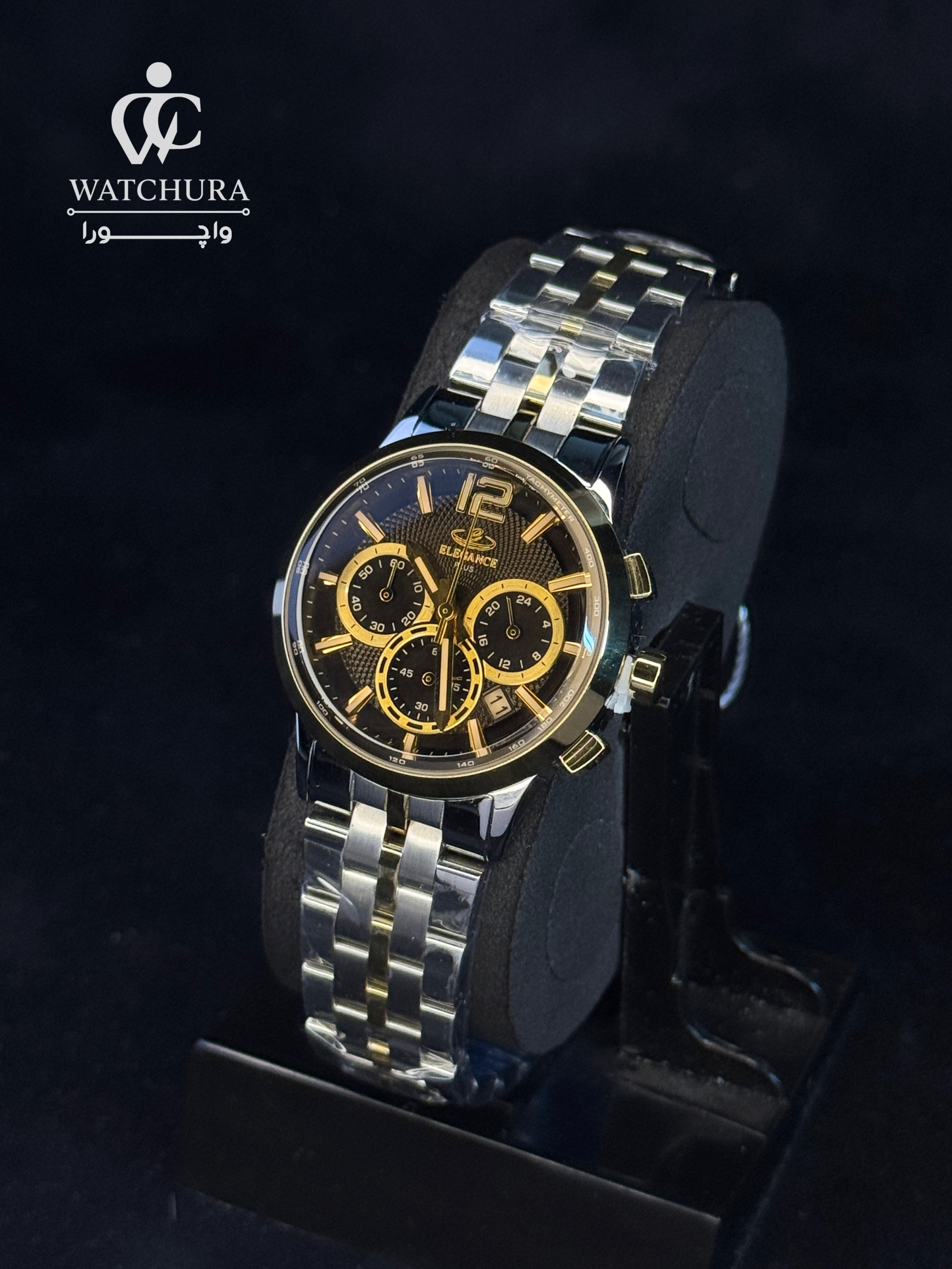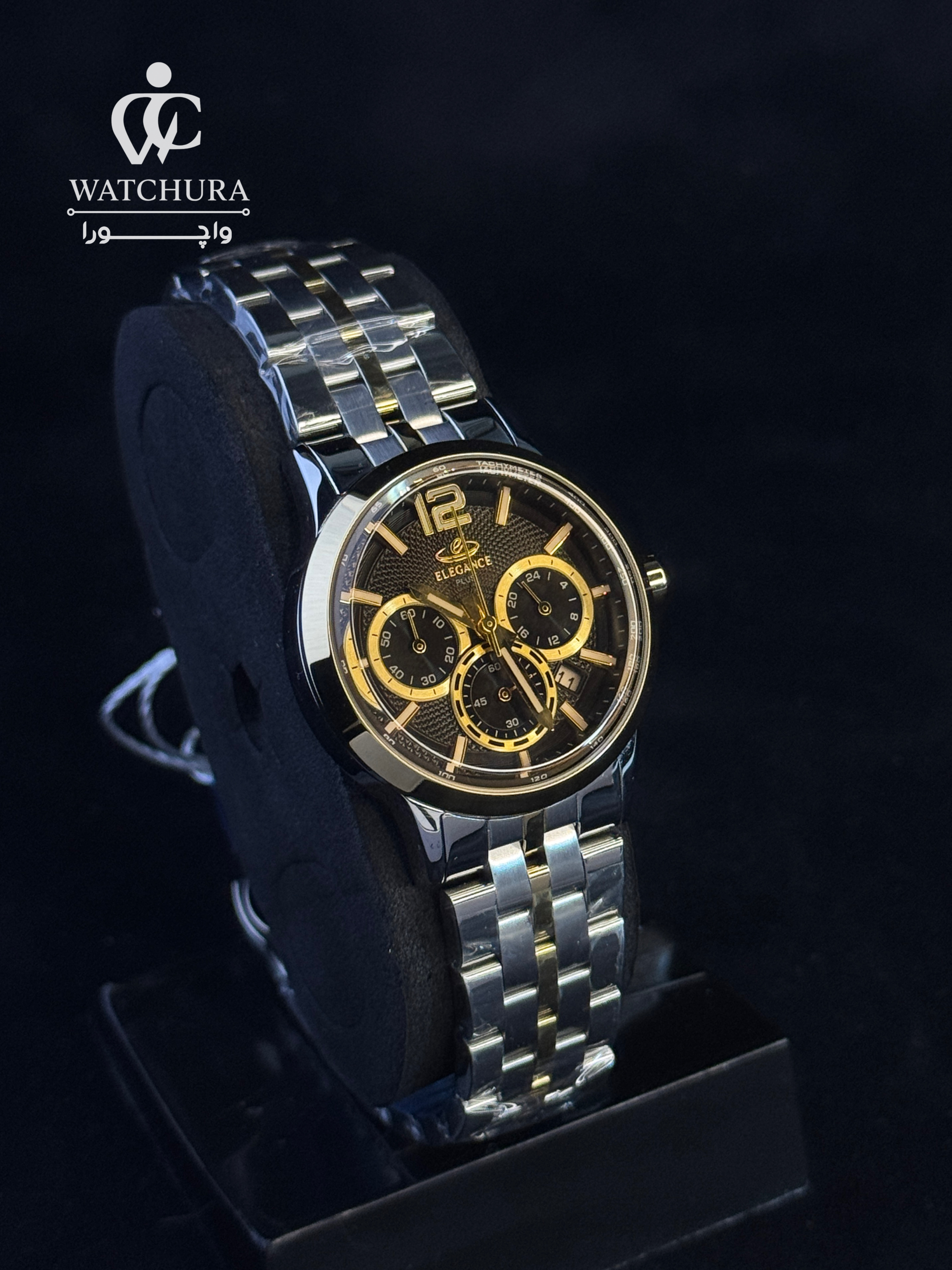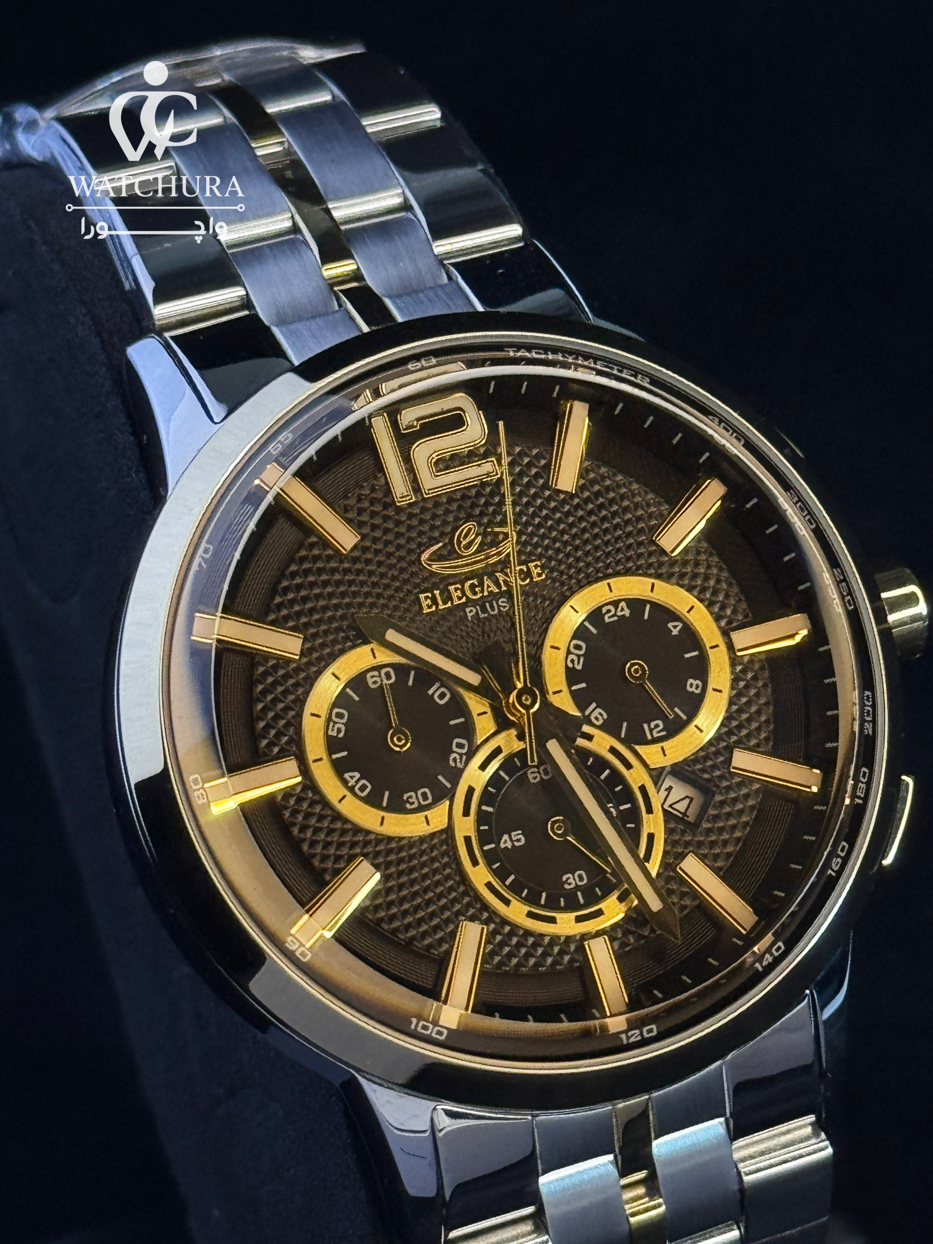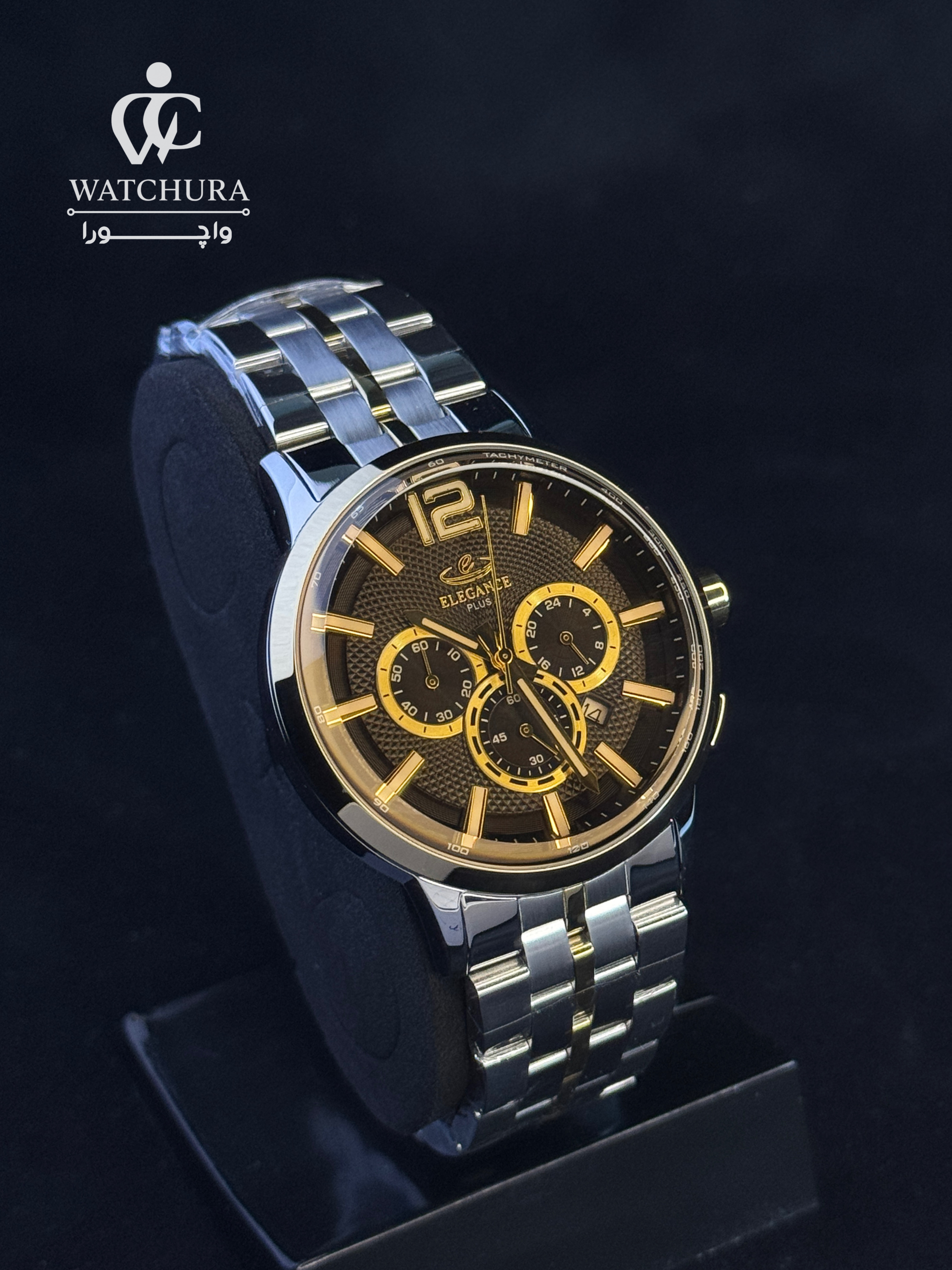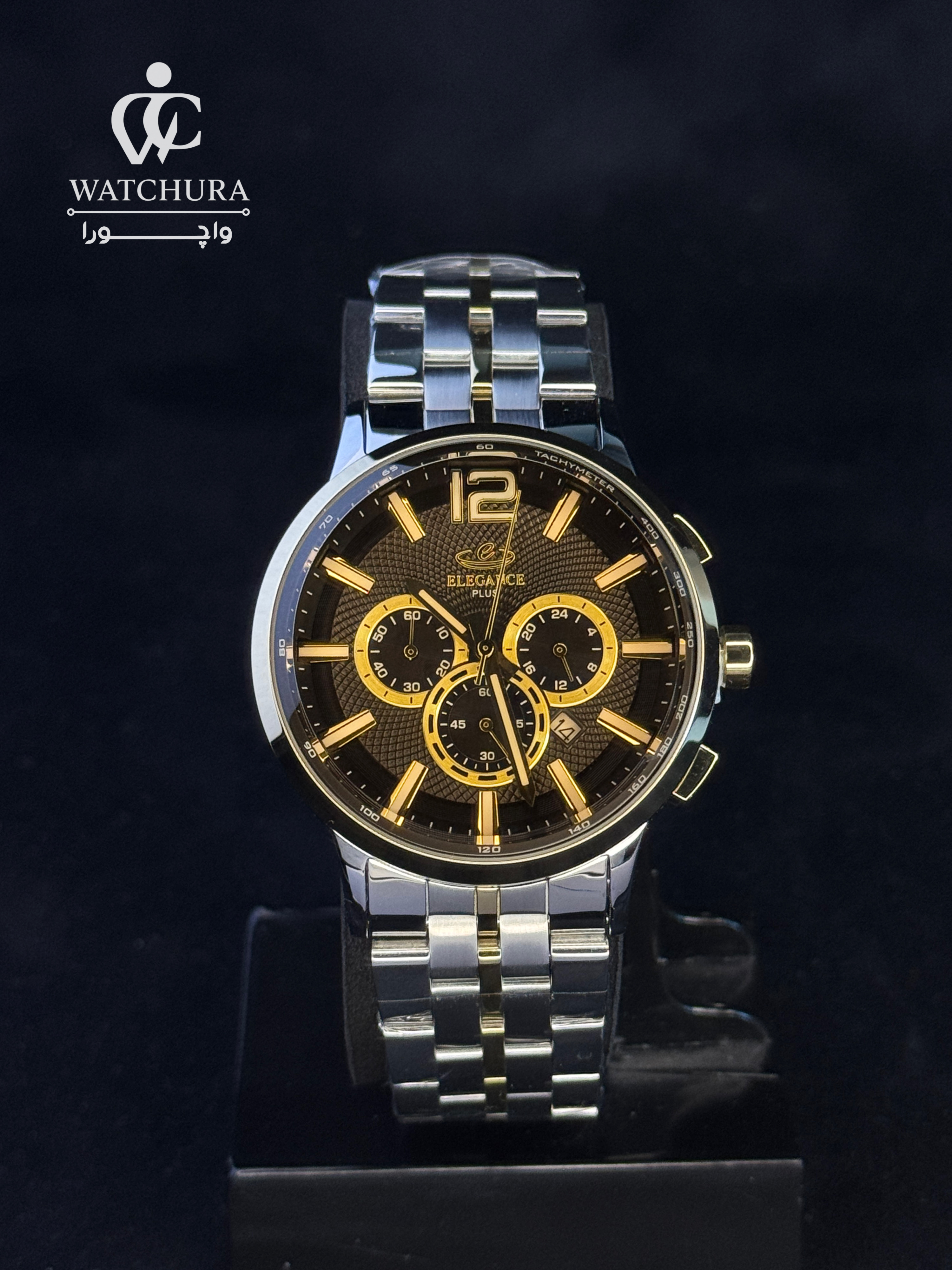 این ست ساعت مچی از کالکشن حرفهای الگانس پلاس، مظهر قدرت، دقت و هماهنگی میان یک زوج خوشسلیقه است. طراحی اسپرت-کلاسیک این مدل با قاب و بند تمام طلایی، درخشش خیرهکنندهای به استایل مشترک شما میبخشد و پیوندتان را در قالب یک اکسسوری لوکس به نمایش میگذارد. صفحات با زیرصفحههای فعال کرنوگراف و ایندکسها، تضادی جذاب ایجاد کردهاند که نشاندهنده اصالت موتور ژاپنی بهکار رفته در قلب این ست است. این مجموعه با بندهای استیل صیقلی، انتخابی ایدهآل برای مراسمهای تجملاتی و ثبت خاطرات در ثانیههای زندگی مشترک است.