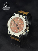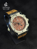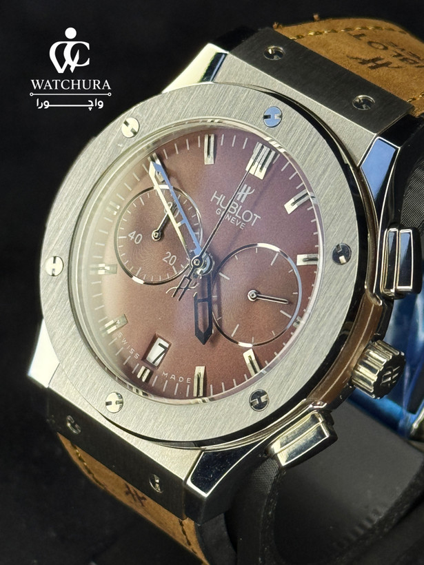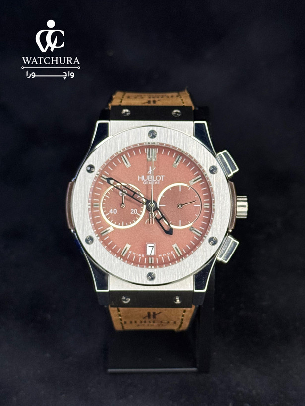 ساعت مچی هابلوت Hublot Geneve Chronograph | صفحه قهوهای و بند چرمی جیر