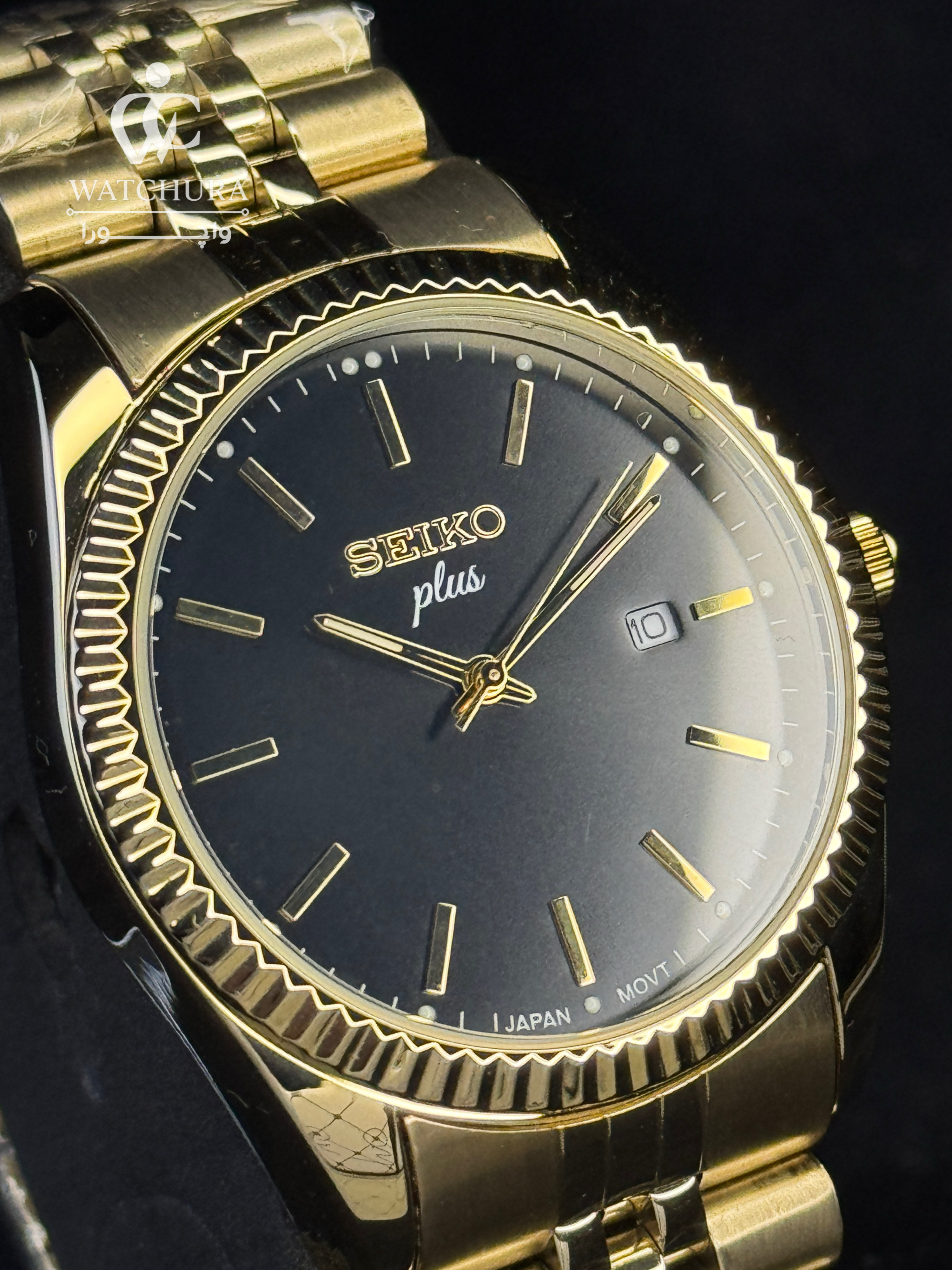 این مدل از سیکو پلاس، ادای احترامی به یکی از محبوبترین طراحیهای تاریخ ساعتسازی است. ویژگی خیرهکننده این ساعت، قاب کنگرهدار (Fluted Bezel) طلایی آن است که با انعکاس نور، درخششی دوچندان به مچ دست میبخشد. ترکیب صفحه مشکی مات با نشانگرهای طلایی و تقویم در موقعیت ساعت ۳، توازنی بینقص میان ابهت و کارایی ایجاد کرده است. این ساعت با بند مدل "جوبیلی" و موتور دقیق ژاپنی، انتخابی ایدهآل برای آقایانی است که به استایلهای کلاسیک، باوقار و اصیل علاقهمندند و میخواهند در مراسمهای رسمی و جلسات کاری، نگاهها را به خود خیره کنند.