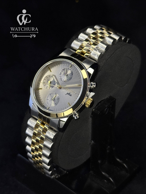 این ست ساعت سیکو پلاس، اوج درخشش و هماهنگی را برای زوجهای شیکپوش به ارمغان میآورد. ترکیب بدنه و بند سیلور-طلایی با صفحه طوسی ، تضادی اشرافی و با ابهت ایجاد کرده که در هر محفلی خیرهکننده است. برخلاف مدلهای ساده، هر دو ساعت مردانه و زنانه در این ست مجهز به سه زیرصفحه فعال هستند که نمایشگر تقویم کامل (روزهای هفته و ماه) و ساعت ۲۴ ساعته را ارائه میدهند. این مجموعه با بهرهگیری از موتور کوارتز ژاپنی و طراحی لوکس خود، هدیهای ارزشمند و ماندگار برای مناسبتهای خاص مانند سالگرد ازدواج یا هدیه عروسی است.