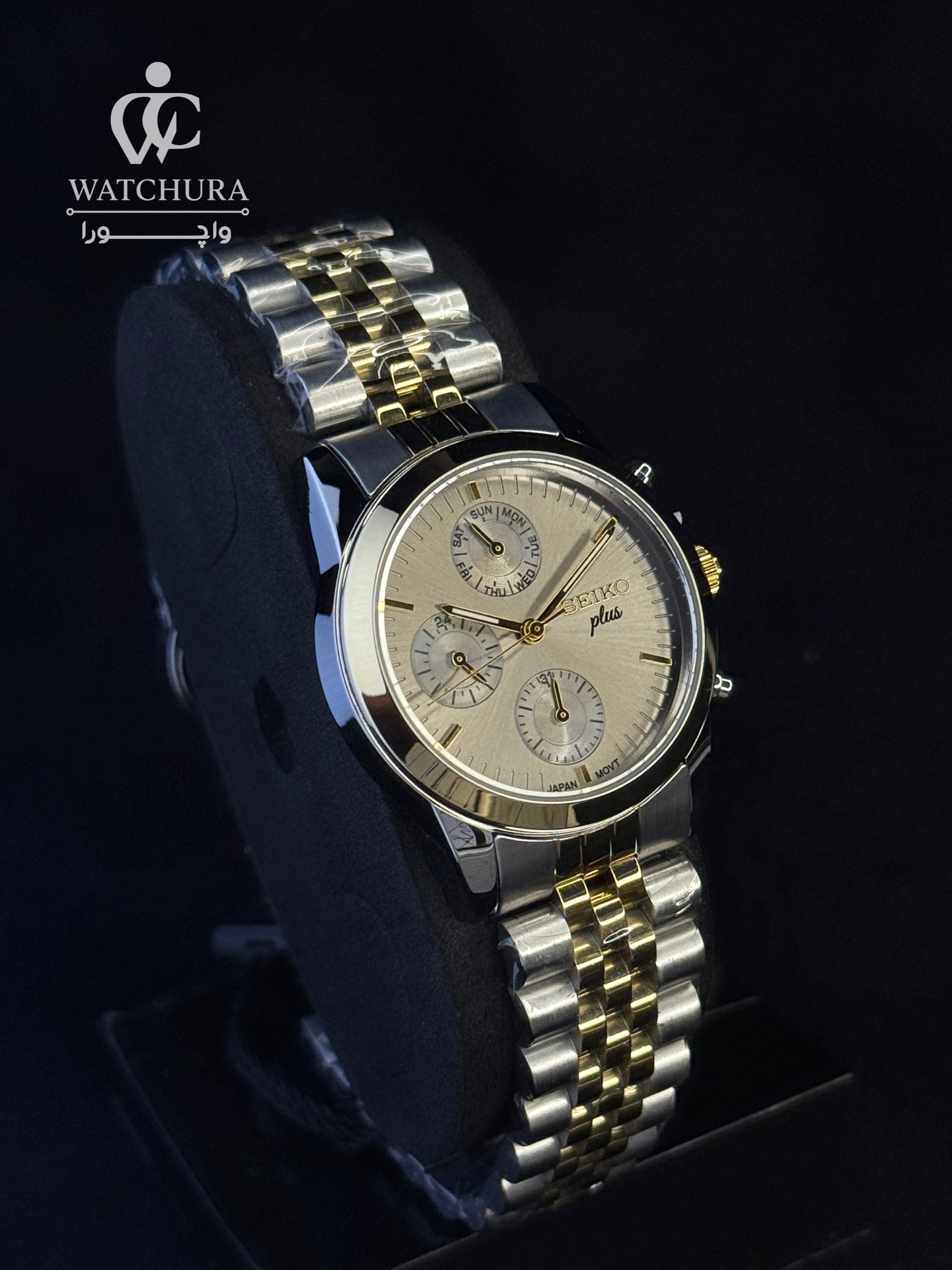 این ست ساعت سیکو پلاس، اوج درخشش و هماهنگی را برای زوجهای شیکپوش به ارمغان میآورد. ترکیب بدنه و بند سیلور-طلایی با صفحه طوسی ، تضادی اشرافی و با ابهت ایجاد کرده که در هر محفلی خیرهکننده است. برخلاف مدلهای ساده، هر دو ساعت مردانه و زنانه در این ست مجهز به سه زیرصفحه فعال هستند که نمایشگر تقویم کامل (روزهای هفته و ماه) و ساعت ۲۴ ساعته را ارائه میدهند. این مجموعه با بهرهگیری از موتور کوارتز ژاپنی و طراحی لوکس خود، هدیهای ارزشمند و ماندگار برای مناسبتهای خاص مانند سالگرد ازدواج یا هدیه عروسی است.