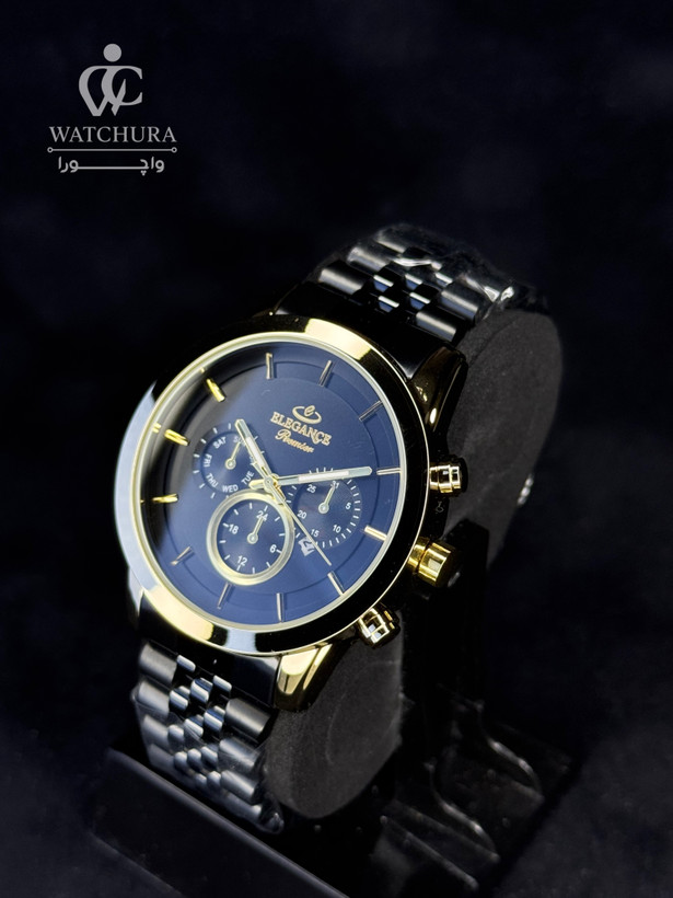 ساعت مچی مردانه الگانس پریمیر (Elegance Premier) کوارتز طرح کرنوگراف استیل (صفحه مشکی)