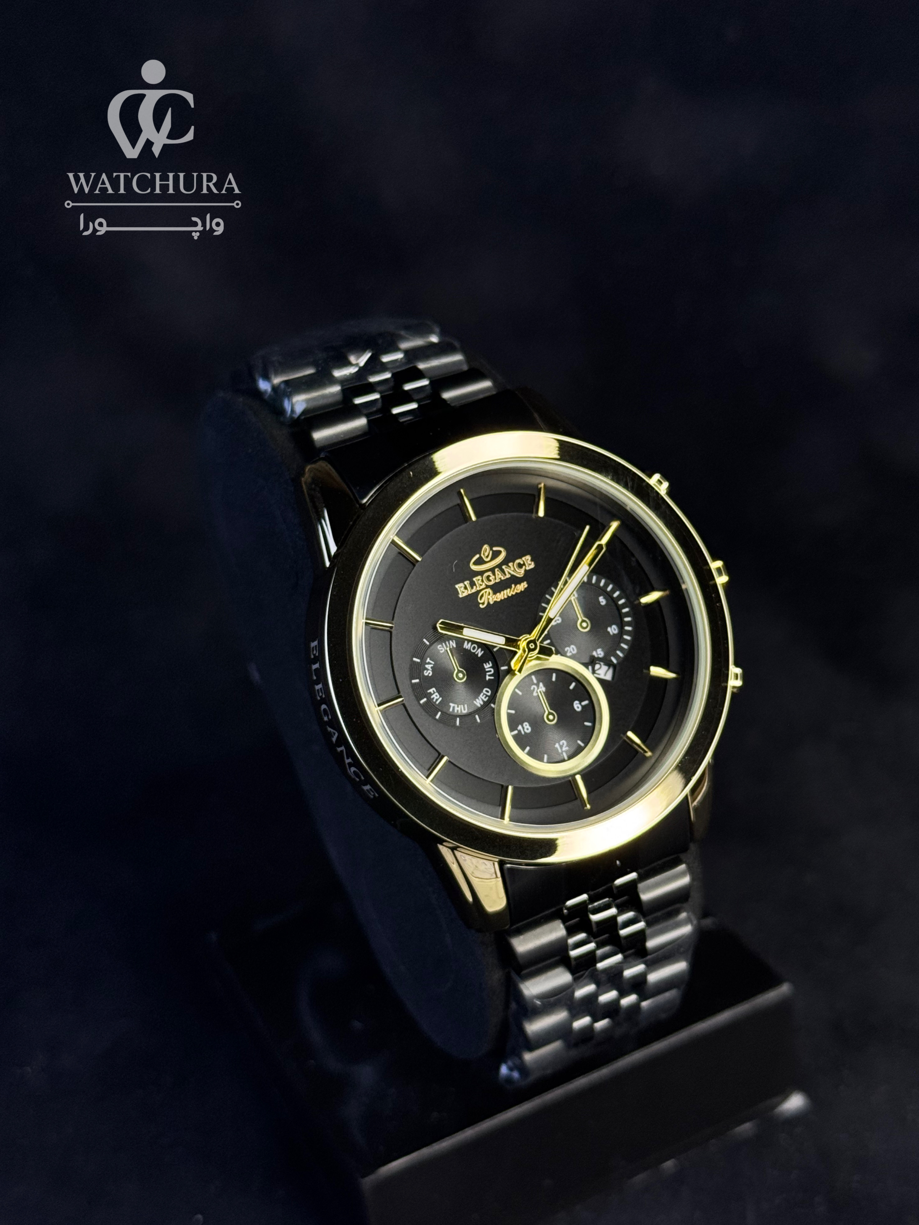 ساعت مچی مردانه الگانس پریمیر (Elegance Premier) کوارتز طرح کرنوگراف استیل (صفحه مشکی)